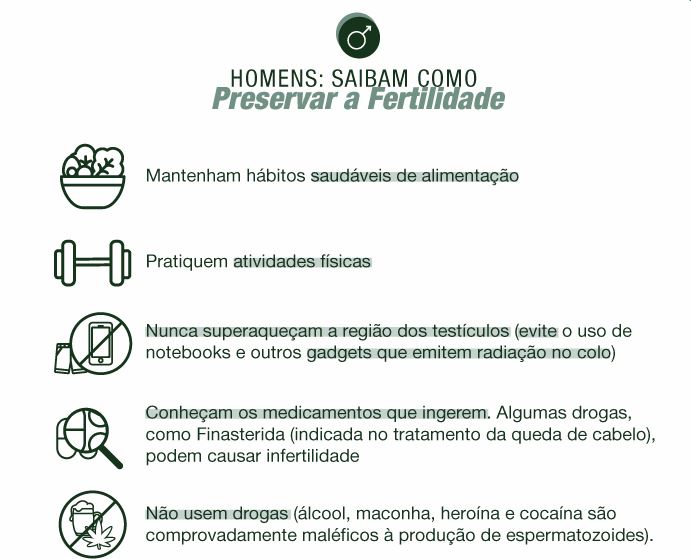 Para além da alimentação saudável, os hábitos de vida têm grande importância quando pensamos em aumentar a fertilidade. Por isso, é importante não fumar, evitar o excesso de bebidas alcoólicas, café e retirar do seu cardápio as bebidas sem valor nutricional, como refrigerantes e sucos industrializados ricos em açúcar.